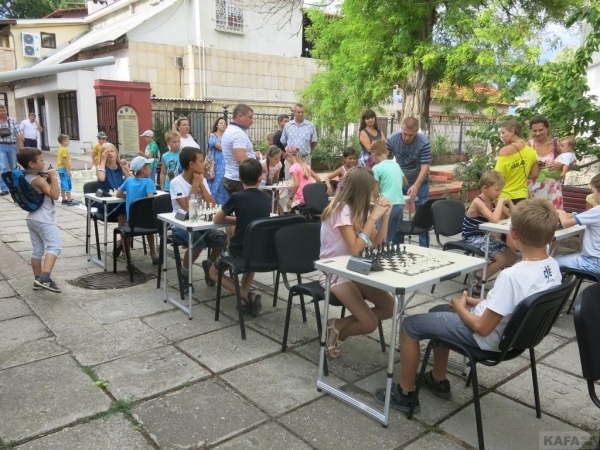 В Феодосии, начиная с этой пятницы, в лапидарном дворике Музея древностей будет проходить праздник «Неделя шахмат», посвященный Международному дню шахмат, - он отмечается сегодня, 20 июля. В Феодосии сегодня открылся шахматный турнир (видео) В Феодосии сегодня открылся шахматный турнир (видео) В Феодосии сегодня открылся шахматный турнир (видео) В Феодосии сегодня открылся шахматный турнир (видео) В Феодосии сегодня открылся шахматный турнир (видео) В Феодосии сегодня открылся шахматный турнир (видео) В Феодосии сегодня открылся шахматный турнир (видео) В Феодосии сегодня открылся шахматный турнир (видео) В Феодосии сегодня открылся шахматный турнир (видео) В Феодосии сегодня открылся шахматный турнир (видео) Программа шахматного праздника: 20 июля 17:00 – Торжественное открытие «Недели шахмат». Шахматный блиц-турнир (2005 г.р. и моложе). Швейцарская система, 9 туров. 21 и 22 июля 17:30 – Семейный турнир в быстрые шахматы. Круговая система. Приглашаются мамы, папы, дедушки, бабушки и дети. 25 июля 17:00 – Игра детских команд в уличные шахматы. Швейцарская система. В команде по три человека. Возраст участников 7-15 лет. 26 июля 17:00 – Сеанс одновременной игры с чемпионкой России среди девочек до 9 лет Лилией Антоновой. 27 июля 17:00 – Сеанс одновременной игры с чемпионкой России среди девушек до 21 года Маргаритой Потаповой. 28 июля 15:00 – Торжественное закрытие. Награждение призеров. Конкурс рисунков, посвященный Международному Дню шахмат и Дню города Феодосия. Сегодня играют умные дети:
