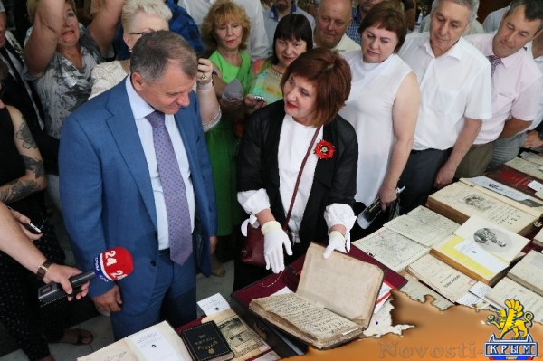 Посетители вернисажа увидели более ста редких изданий, среди которых карты полуострова, схемы обороны Севастополя, книжные издания по древнейшей истории Крыма и становлению Таврической губернии в составе Российской империи. Главные экспонаты – подлинный Воинский устав Петра I, собственноручно подписанном императором в 1719 году, и материалы, повествующих о Крымской (Восточной) войне 1853—1856 годов. Среди редких экспонатов - вышедшая в 1914 г. в Киеве, книга Сергея Щеголева «Современное украинство: его происхождение, рост и задачи» - своеобразная хроника измены и предательства.