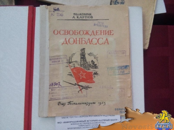 Руководитель санкт-петербургского историко-научного центра Ирина Кузнецова рассказала нашему корреспонденту, что на выставке представлены книги и более позднего периода- Великой Отечественной войны. Среди них – «Борьба за Киев» (1944г.), «Освобождение Крыма» (1944г.). А две из них – «Освобождение Донбасса» (1943г.) и «Битва за Мелитополь» 1944г.) – не потеряли, к сожалению актуальности и до сего дня.