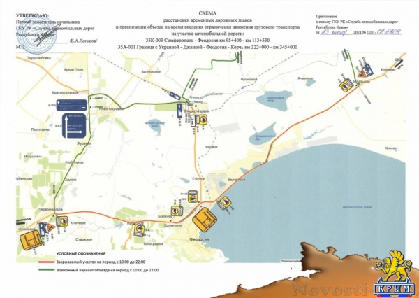 увеличения пропускной способности и проведением дорожных работ с 1 августа 2018 года будет изменена схема движения на участке дороги Батальное – Феодосия – Первомайское. На данном участке дороги с 1 августа также вводится ограничение движения грузовых транспортных средств с 10:00 до 22:00. Объезд участка возможен по маршруту Соляное – Каменское – Владиславовка, сообщает Керчь ИНФО.