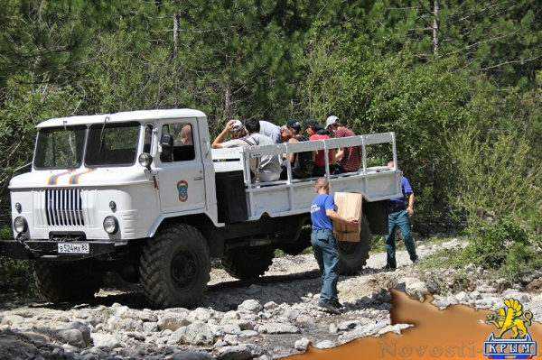 © РИА Новости Крым. Владислав Сергиенко Добровольцы помогают тушить пожар в ущелье Уч-Кош возле Ялты Вверх, в горыТем временем в штабе собрались около восьми добровольцев. Чтобы они не шли в горы пешком, их завозят на "шишариках" – так здесь называют грузовики ГАЗ-66. Параллельно в кузов складывают воду и сухие пайки, для тех, кто уже работает наверху, в очаге.