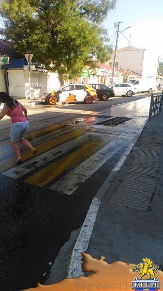 Очередной порыв в центре Феодосии на пересечении улиц Нахимова и Назукина