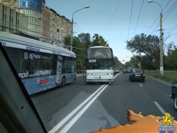✔ В Симферополе троллейбус "рогом" проткнул рейсовый автобус - «Происшествия»
