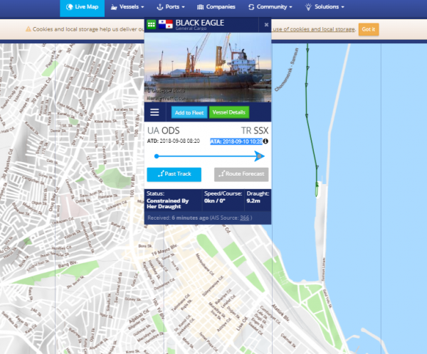 Судно BLACK EAGLE прибыло из Одессы в порт Самсун Фото: investigator.org.ua