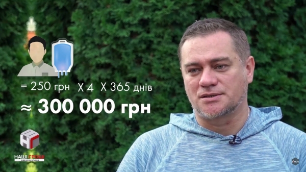 «1 процедура коштує близько 250 грн. До 4 процедур на добу, 365 днів на рік. Тобто лікування 1 людини понад 300 тис гривень. Ось це лікування державі обходиться більше чверті мільярда гривень на рік», — розповідає редактор інтернет-видання «Наші Гроші» Юрій Ніколов.