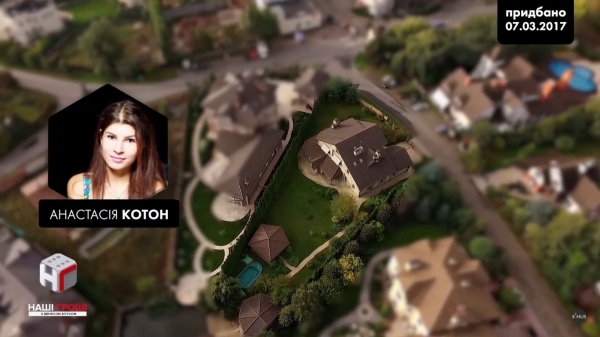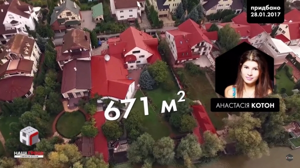 Восени 2016 року наша програма розповідала про нерухомість іншого відомого СБУшника, екс-очільника управління по боротьбі з корупцією – Юрія Артюхова. Аби зрозуміти, скільки міг коштувати такий маєток – порівнювали його з сусідами. Тоді й виявилося, що будинок зліва від Артюхова – якраз продавався. Продавався він за два мільйони доларів. І буквально через півроку саме цей будинок придбала Анастасія Котон. Сусідкою через паркан від одного СБУшного топа, стала родичка іншого СБУшного топа.