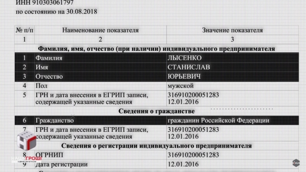 Окрім цього в Єдиному реєстрі юридичних осіб РФ знайшовся витяг на повного тезку Станіслава Лисенка з Ялти (старший син Лисенко), де він також зазначений громадянином Росії. Такі ж витяги ЕГРЮЛ видає – на дружину і тещу Станіслава, і на батьків Котона. Тобто загалом 8 родичів з підозрою на подвійне громадянство. Подвійне, в котрому друге – це громадянство країни, з якою Україна вже п’ятий рік воює.