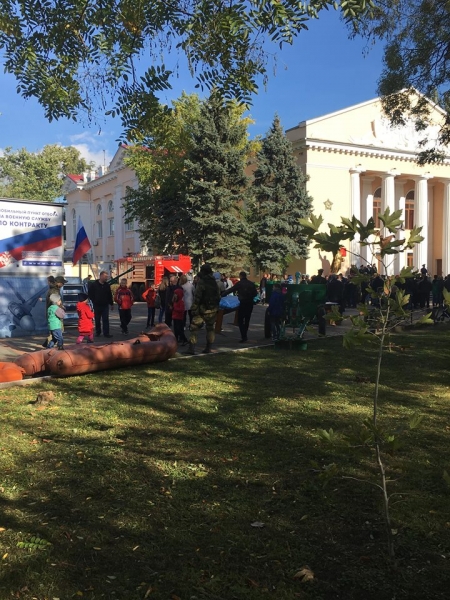 В детском центре «Артек» специалисты российского «МЧС по Крыму» в рамках соревнований «Школа безопасности» обучали детей надевать боевую одежду, противогазы и общевойсковой защитный комплект «Костюм Л-1». А в Феодосии вербуют на службу по контракту, привлекая детей.