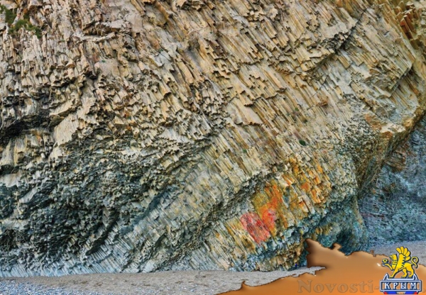 Интересно, что с обратной стороны, доступной взору только с моря, она, как и Крестовая скала, сложена из шестиугольных призматических столбцов. Эта геометрически правильная структура поражает воображение. Само жерло вулкана, как предполагается, располагалось на месте мыса. Если двигаться в любую из сторон от него, на протяжении нескольких километров встречаются застывшие потоки лавы – свидетельства бушевавшего миллионы лет назад вулкана.