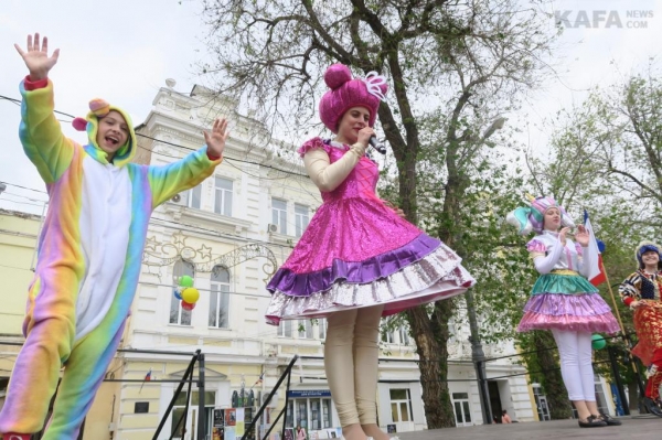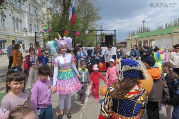 Феодосийский клуб досуга «Клуб'Ок» подготовил для детей развлекательно-игровую часть праздничной программы. Веселые игры перемежевывали собственно концертные номера артистов и с самого начала праздника, а в заключительной его части заняли все внимание собравшихся здесь феодосийцев и гостей нашего города, и в первую очередь, конечно же, детворы. Ребята с азартом и удовольствием принимали участие в праздновании 1 мая на главной площади Феодосии.