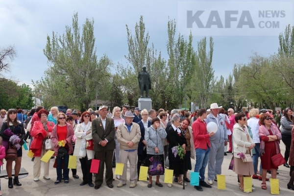 Трудовые коллективы, первые лица города, рядовые феодосийцы прошли колонной к Привокзальной площади, где возложили цветы к памятнику Владимиру Ильичу Ленину.