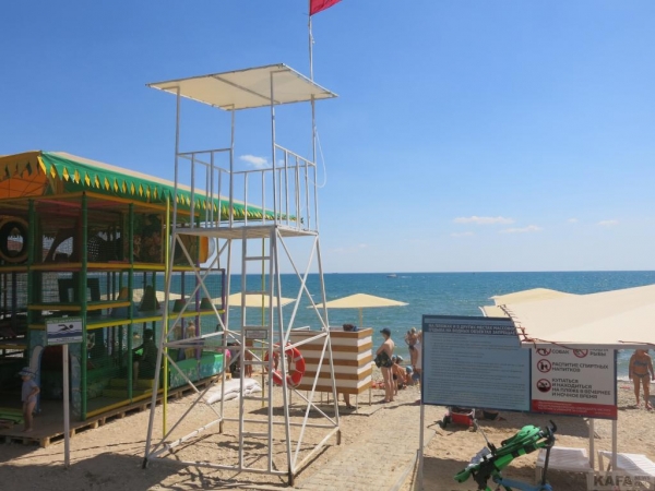 Это пляж Камешки. Спасателя аналогично нет, круга нет, зато есть флажок