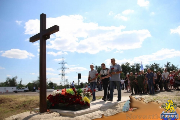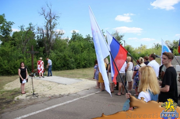 Участники митинга, в том числе родные и коллеги погибших журналистов, жители поселка Металлист почтили память погибших минутой молчания, а затем возложили цветы к подножию памятного креста.