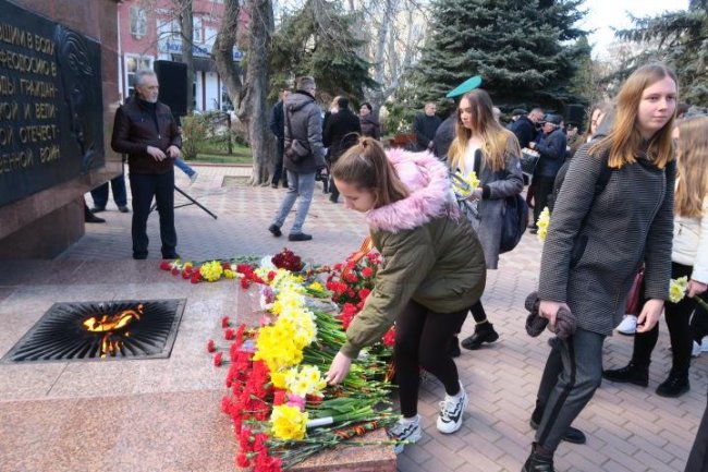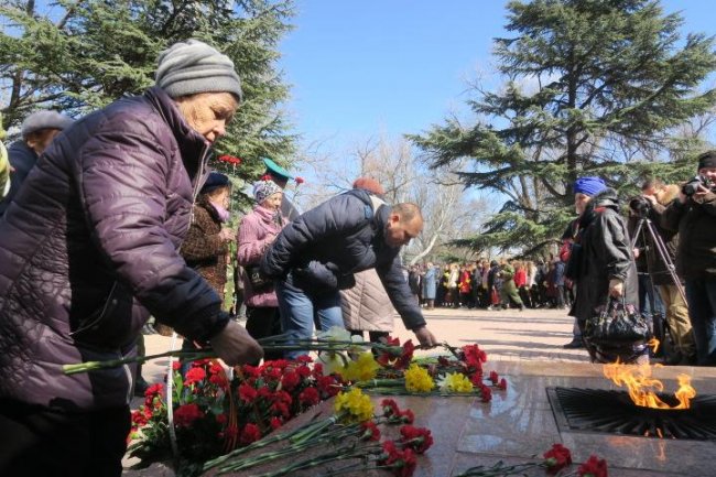 Тут же были вручены юбилейные медали «75 лет Победы в Великой Отечественной войне 1941-1945 годов» феодосийским ветеранам Великой Отечественной войны: Александру Ларину, Петру Лашко, Григорию Четвертаку и Клавдии Шкалиной. Минутой молчания была почтена память всех отдавших жизнь за тяжелейшую победу над врагами нашей Родины. К вечному огню были возложены многочисленные цветы в дань памяти героев-защитников Отечества.