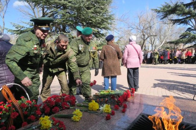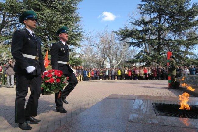 В честь памяти защитников границ нашей Родины у феодосийского мемориального комплекса «Вечный огонь» прошел торжественный митинг. Здесь перед собравшимися выступили заместитель председателя горсовета Дмитрий Давыдов, замглавы городской администрации Наталия Коваленко, председатель Совета ветеранов Феодосии Валерий Ракитянский и другие ветераны войны и труда, воинской службы, в том числе и пограничной, официальные лица и простые горожане.