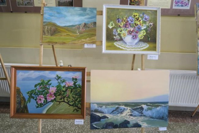 К шестой годовщине воссоединения Крыма с Россией в феодосийском городском Доме Культуры открылась выставка живописи «Крымская весна». В фойе ДК расположилась праздничная экспозиция работ художников студии изобразительного и декоративно-прикладного искусства «Индиго» руководимой Еленой Черуха.