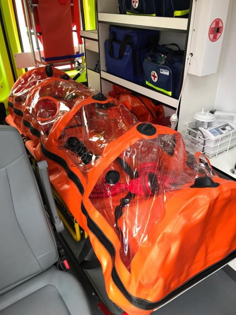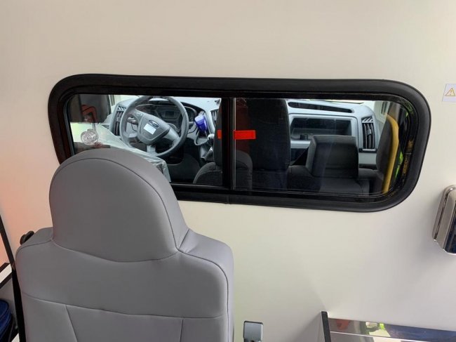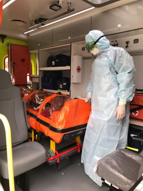 Кабина водителя герметично изолирована от салона. В салоне имеются боксированные носилки для транспортировки потенциально инфицированных или инфицированных лиц. Учтены все меры для предотвращения распространения вируса.