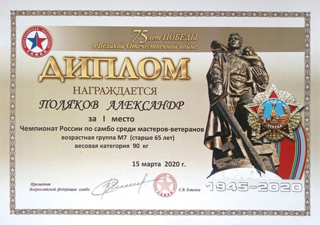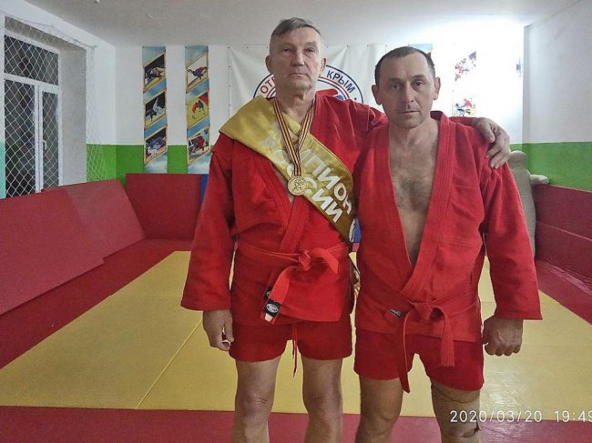 Судьба и спортивная карьера Полякова Александра Алексеевича действительно необычная. 15 марта, в 67 лет Александр Алексеевич стал чемпионом России по самбо среди мастеров-ветеранов в возрастной группе М7 (старше 65 лет). Святослав Каверин Чемпион России Александр Алексеевич Поляков Александр Поляков со своим тренером Андреем Пашуком Удивительный чемпион России из села Береговое Удивительный чемпион России из села Береговое Береговое. Воспитанники Андрея Пашука На суде по Золотому пляжу в Симферополе «Кафа» встретились с чемпионом – Александром Поляковым и его тренером Андреем Пашуком. - Александр Алексеевич, с чего начиналось ваше увлечение спортом, как оно повлияло на вашу жизнь? - Я начал заниматься самбо с 16 лет, в Феодосии, на спортбазе «Динамо». Моего тренера Сергея Евгеньевича Татаренко призвали в армию, затем меня призвали в 1970-м. Оба служили в ВДВ, встретились. В армии стал чемпионом ВДВ СССР, мастером спорта СССР. Служил в Фергане, стал чемпионом Узбекистана среди молодежи. В 1972 году демобилизовался, вернулся в Феодосию. Сначала поступил в Лениградский кораблестроительный институт. Через год друзья спортсмены переманили, и в 1974 году поступил в Ленинградский институт физкультуры и спорта имени Лесгафта, женился во время учебы. - А когда вновь вернулись в Феодосию? Перевелся на заочное отделение, и в 1975 году вернулся в Феодосию, стал работать тренером в Орджоникидзе. Затем на заводе Гидроприбор выбрали секретарем комсомола. Проработал там около четырех лет и в 1981 году меня назначили руководить комитетом физкультуры и спорта феодосийского исполкома. Проработал в комитете по 1985 год и уехал на Север. Вернулся в 2007 году в Феодосию и поселился в Береговом. В 1976 году, работая тренером, получил травму левого колена - повредил мениск и две связки. Поставили две искусственные лавсановые связки, мениск зарос, но с активным занятием спортом пришлось распрощаться. - Но прошло время, и вы вернулись к занятиям спортом? В 2011 году пришел к Андрею Николаевичу (тренер по самбо Андрей Николаевич Пашук – прим.) и начал понемногу тренироваться, чтоб здоровье поправить. Но так получилось, что в 2017 году съездил на чемпионат России в Казани и стал вторым. Соревнования среди мастеров спорта старше 35 лет. На чемпионатах России в 2018, в Нижнем Новгороде – третий, в 2019, в Ржеве – опять третий. И вот 13-15 марта 2020 года первое место на чемпионате в Санкт-Петербурге. Участвовало 218 человек из 35 регионов. Всего 7 возрастных групп участвует в этих чемпионатах. Выступал в группе М6 (60-65 лет), а в 2020-м в группе М7 (65 ). Первого июня мне 68 лет исполнится. - Какие были ощущения после победы, когда в таком возрасте, достаточно большом для спортсменов, завоевали первое место? Ожидали такой результат? - Ну, приятно (смеется). Девять лет я тренируюсь. Три раза в неделю. Плюс еще дома. Каждый день утром гимнастика, подтягивания, отжимания, перекладина, штанга. Получается, каждый день тренируюсь. - А какие физические ощущения? - Поначалу всё болело, ныло. Перерыв то большой у меня был. А потом втянулся. У меня организм тренированный с детства. Я большой спорт тогда бросил после травмы, но совсем из спорта не уходил. Сейчас я самый возрастной спортсмен в Крыму, старше меня нет никого. - Чем, кроме самбо, занимаетесь? Андрей Пашук вклячился в нашу беседу и пояснил, что Александр Алексеевич, к