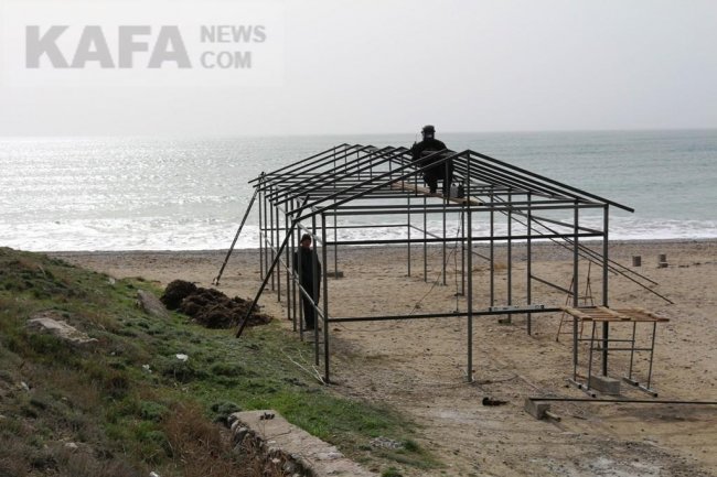 Под холмом Юнге на пляже ведутся масштабные строительные работы. Рабочие сооружают несколько каркасов из дерева и металла. Напомним, что по закону строительство в стометровой прибрежной зоне запрещено.