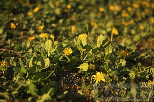 Желтые цветы чистяка на газонах