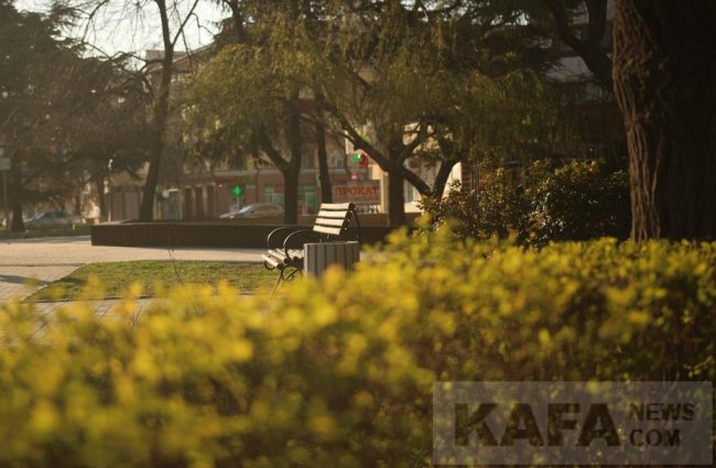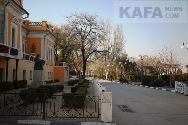 Бело-розовую дымку цветущих деревьев постепенно сменяет свежая зелень. Распускаются листья каштанов и сирени. На клумбах многоцветье маргариток, примул, анютиных глазок и нарциссов, газоны покрыты солнечными цветами чистяка. Айвазовский одиноко сидит у своей галереи и, в ожидании посетителей, смотрит на пустую набережную. Голуби с крыши насосной станции наблюдают за городом, а самые смелые обживают новое колесо обозрения в парке аттракционов. Чаек и лебедей раскормили за зиму сердобольные жители, птицы спокойно себя чувствуют на пустынном пляже. Вольготно на безлюдных улицах Феодосии собакам и кошкам. Открыты маленькие уличные кофейни, но посетителей нет. Лавочки, в отсутствии прохожих, задумываются о смысле своего существования. Добрый гений с недоумением смотрит на опустевший сквер. Для кого вся эта красота? Ни для кого. И от этого она еще более прекрасна в своей самодостаточности и одиночестве.