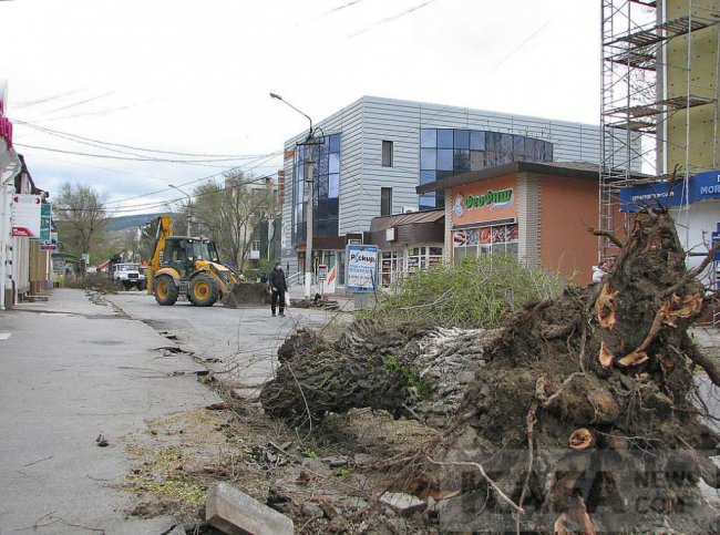 Выломаны все бордюры от рынка до Дома офицеров, с корнями вырваны деревья, распилены и вывозятся. Жители недоумевают: «Несколько лет назад положили новый асфальт на дороге и тротуарах. Улица в удовлетворительном состоянии. А вот на пересекающей улицу Куйбышева улице Украинской тротуары ужасные. Почему надо было крушить именно Куйбышева?».