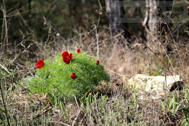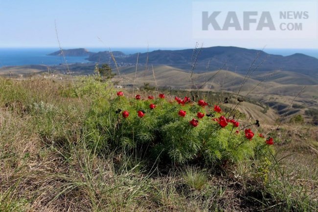 В конце апреля киммерийские холмы покрывают алые огоньки узколистных пионов. Пушистые зеленые подушки тонких листьев покрывают десятки ярко-красных цветов с атласными лепестками. Целые поляны пионов спускаются по холмам с перевала в сторону Орджоникидзе. Между ними встречаются желтые цветки адониса, серебристые ажурные кустики с темно-багряными цветками ноннеи, а если повезет, можно увидеть сиренево-фиолетовые изящные соцветия крымской орхидеи – ятрышника пурпурного.