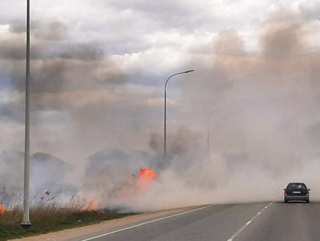 В 10 часов утра понедельника в социальной сети «Вконтакте» феодосийцы рассказали о том, что горит камыш в районе Золотого пляжа. К обеду появились фотографии пламени, которое доходит почти до дороги. Сам район погрузился в густой дым.