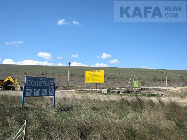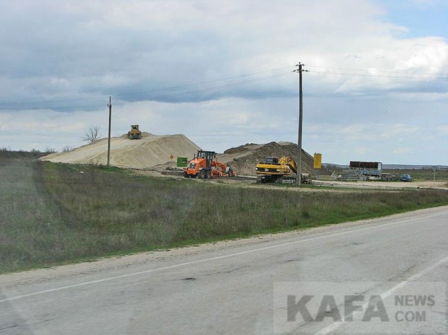 У поворота с трассы Феодосия – Коктебель на гору Клементьева видны стоящие экскаваторы, другая техника. Появился вагончик строителей. Насыпаны большие кучи то ли щебня, то ли отсева с карьера. Видны рулоны гидроизоляционного полотна, которое укладывают при устройстве подушки дороги. Впечатление, что процесс вялотекущий. Можно рассмотреть, что перед вершиной дорогу пробивают по новому маршруту, сместившись левее, склон подрезан метра на два - три.