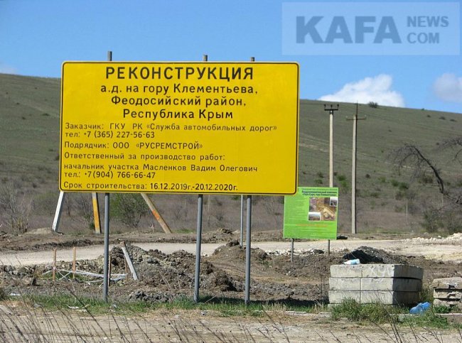 На въезде появился информационный щит, который сообщает, что заказчиком реконструкции автодороги на гору Клементьева является ГКУ РК «Служба автомобильных дорог», а подрядчик ООО «Русремстрой». Срок строительства: 16 декабря 2019 – 20 декабря 2020 года.