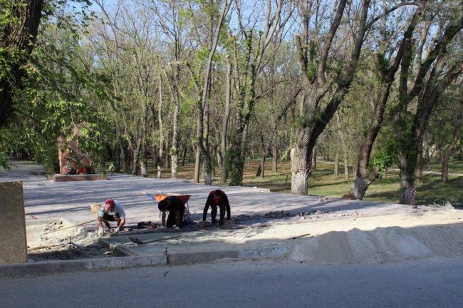 Между тем, пока в городе так не многолюдно, наступила самая прекрасная пора весны — все цветет, пахнет и радует глаз тех немногочисленных, которые вышли подышать свежим воздухом. А в Комсомольском парке, тем временем, полным ходом идет замена плитки.