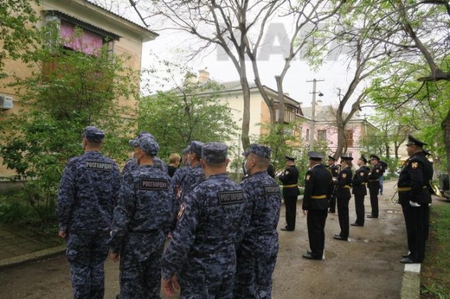В четверг, 7 мая в Феодосии персонально поздравляли ветеранов с наступающим семидесятипятилетним юбилеем Победы советского народа в Великой Отечественной войне. Во двор одного из домов на улице Федько, где проживает участник войны 1941 – 1945 годов, героически прошедший Сталинградскую битву Василий Конышев, прибыли росгвардейцы.