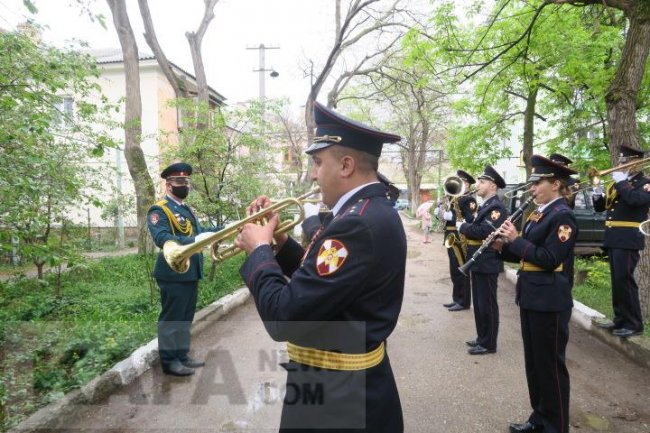 А музыканты военного оркестра вместе со своими сослуживцами из российской национальной гвардии в этот день с утра уже поздравили и других ветеранов. Они побывали в Щебетовке у Ольги Савчук и Марии Кескюля, а еще у Василия Архипенко в Коктебеле, где также прозвучала музыка Победы и поздравления людей непосредственно ее ковавших.