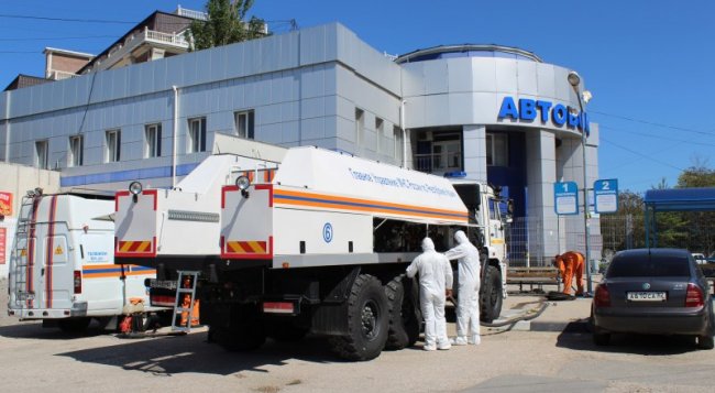 ✔ Сотрудники МЧС дезинфицируют крымские автостанции - «Новости Крыма»
