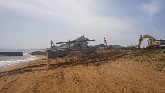К сожалению, в условиях карантинных мер «Кафа» не смогла добраться на этот пляж. Изучив информацию, которую публикуют на своих страницах в социальных сетях общественники, выяснилось, что проблемой заинтересовался крымский общественник Александр Талипов. Он посетил пляж и подтвердил факт осуществления масштабных строительных работ.