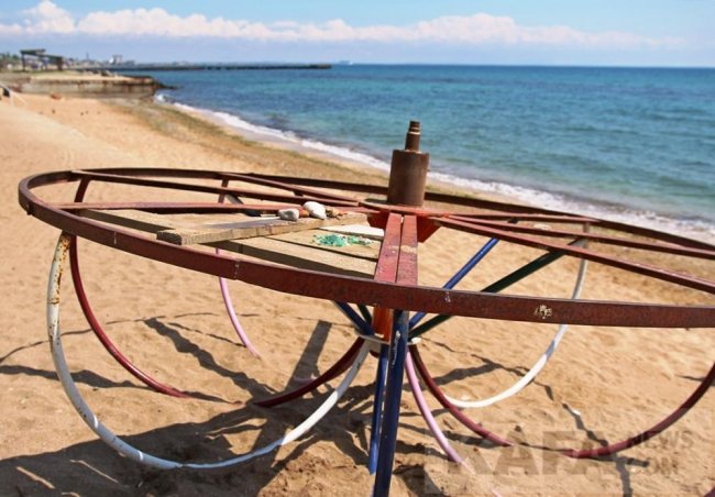 На контрасте с ухоженным «Лазурным берегом» ужасающе выглядит соседний бесхозный пляж. По словам работника «Динамо», спортбаза пыталась получить этот пляж в пользование, но не смогла. Этот вопрос поднимался еще в 2015 году, но до сих пор не решен. Пляж остается заброшенным. Вероятно, он требует больших материальных вложений для эксплуатации. На нем нет как таковой пляжной полосы, берег обрывается бетонной стеной. Сейчас она, как и спуск к морю, находится в аварийном полуразрушенном состоянии. В таком же состоянии остатки пляжной инфраструктуры. Купаться здесь опасно для здоровья. На пляже собирается небольшая компания старожилов, которые помнят лучшие времена, очень переживают, глядя на нынешнюю разруху, и надеются, что место их юности приведут в порядок.