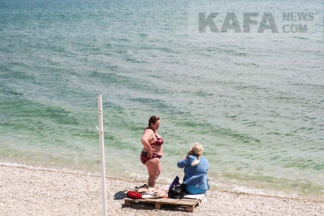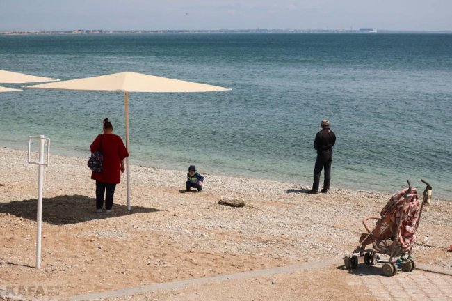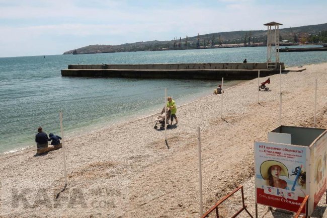 Атрибут большинства горожан – куртка, брюки. На пляже «Камушки» днем одна купальщица, остальные предпочитают пока только созерцать море.