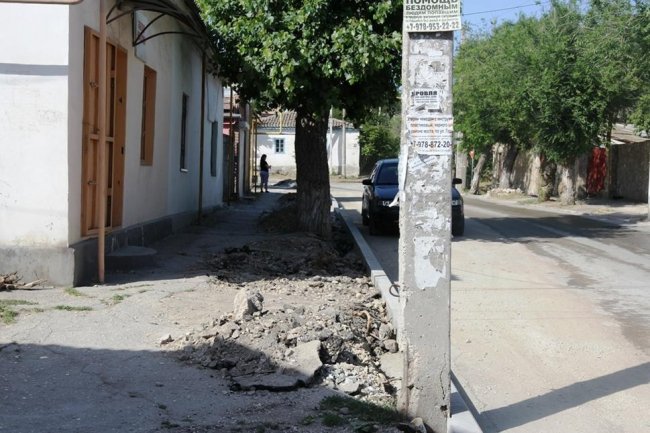 Жители Феодосии часто жалуются, что в городе ремонтируют только центральные улицы. На этот раз власти обратили внимание на плохие дороги в районе Карантина. На небольшом участке Старокарантинной улицы, в районе остановки «Мост» ремонтируют тротуар.