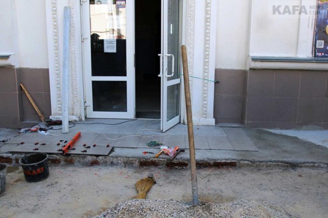 По распоряжению главы Крыма Сергея Аксенова, культурные учреждения пока остаются закрыты. Удобное время, чтобы заняться ремонтом помещений. Именно так и поступили в кинотеатре «Пионер» на улице Чехова. Вера Полякова Ремонт кинотеатра «Пионер» В помещении кинотеатра построили новый туалет, которым могут пользоваться люди с ограниченными возможностями. В данный момент идет ремонт входа в кинотеатр. С одной стороны от двери соорудили пандус, правда, дверь открывается тоже в эту сторону. Не очень понятно, как маломобильные граждане и мамы с колясками будут заезжать в помещение. Крыльцо при входе рабочие выкладывают плиткой.