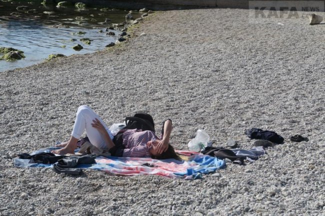 Вот и началось натуральное лето. Днем стоит настоящая жара, бьющая все температурные рекорды. Уже с восходом солнца к морю тянутся люди, чтобы успеть до пекла насладится нежными лучами солнца. Помимо загорающих немало здесь можно наблюдать и купальщиков. Вода прогрелась до восемнадцати градусов, а местами и выше.
