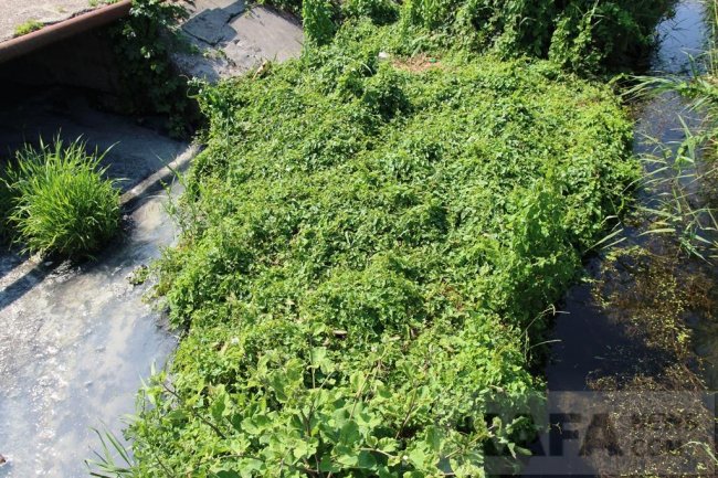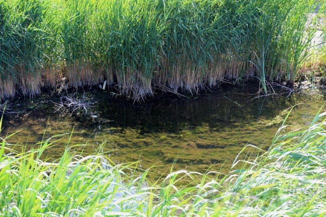 Русло замусорено и заросло камышом