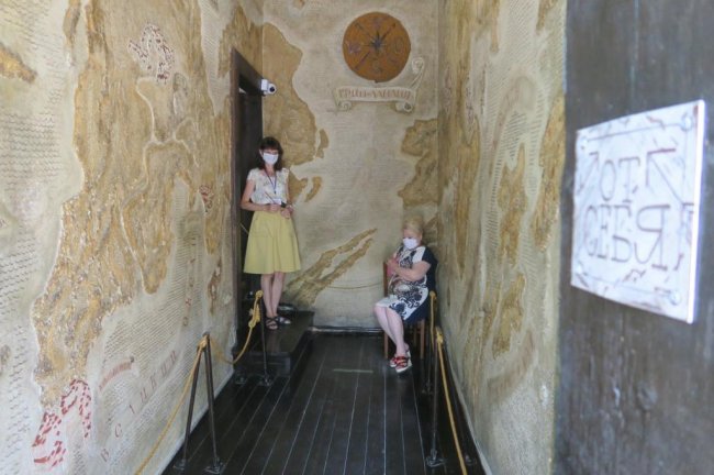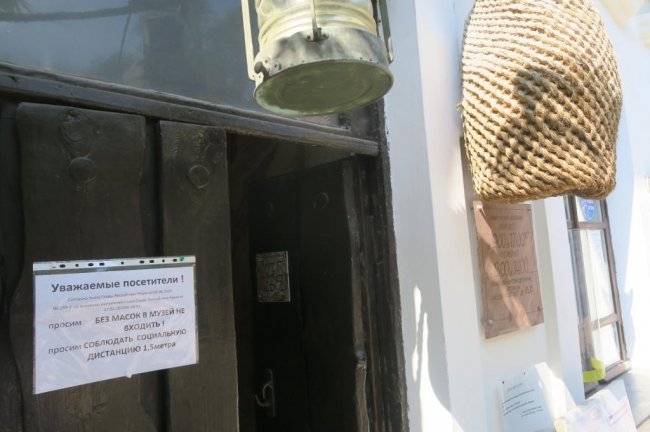 Как и во многих других публичных заведениях города находиться здесь можно только в индивидуальных средствах защиты органов дыхания – масках. Для соблюдения полутораметровой социальной дистанции – другого обязательного требования – поверхность пола в музее разграничили специальными метками.