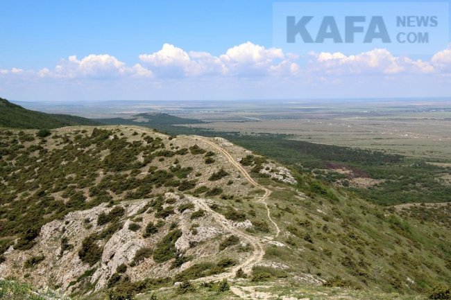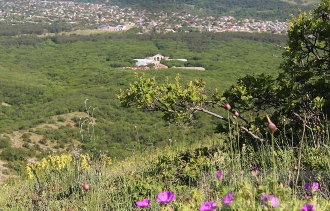 К северу от Старого Крыма расположен горный массив Агармыш, известный своими карстовыми пещерами, заповедным лесом и прекрасными видами. Агармыш легко можно обойти за один день. Вера Полякова Над Старым Крымом На восточном краю Лысого Агармыша Остатки декораций Тропа на Большой Агармыш Лесная дорога сквозь заросли трав и цветов Развилка с указателем Корабельный мыс Папоротник в Волчьем яру Вход в пещеру Лисий хвост Бездонный колодец Вид в сторону побережья Чабрец Шиповник Заросли дуба Санаторий Вид на Малый Агармыш Купина неопалимая С крымско-татарского Агармыш переводится, как «поседевший», «побледневший». В этих краях часто бывают туманы, которые во время холодов замерзают инеем на ветвях Агармышского леса, покрывая его склоны ледяной «сединой». Длина горного хребта около восьми километров, а высота – 723 метра над уровнем моря. Путешествие на Агармыш лучше всего начать с подъема на его восточную часть – Лысый Агармыш. Дорога начинается на восточной окраине Старого Крыма и ведет мимо карьера в седловину между Лысым Агармышом и главной вершиной. Можно пройти ближе к карьеру (через него не пропустит сторож) сразу на Лысый, но там путь не так удобен. С Лысого Агармыша прекрасно видна Феодосия, степная часть восточного Крыма, лес и горы на побережье. Сверху хорошо видно, как карьер вгрызается в гору за очередной порцией известняка. Из-за активных работ в карьере гора уже уменьшилась на 70 метров в высоту. На хребте Лысого Агармыша сохранились остатки декораций к фильму «9 рота» Федора Бондарчука. Когда-то в этом месте был храм. Продолжаем путь по хребту, в сторону Большого Агармыша. Подъем не сложный, сквозь заросли цветов, трав и кустарников. Вершина горы покрыта лесом из граба, дуба и бука. С 1975 года Агармышский лес признан памятником природы. Лес является природным водосбором, здесь остались следы средневекового водопровода, снабжавшего питьевой водой поселения в долине. Также в Агармышском лесу встречаются липа, вяз, ясень, клен, кизил, боярышник, а на открытых местах скумпия, шиповник и ежевика. Тропа идет в тени под пологом деревьев, но то здесь, то там выходит на открытые поляны. Несмотря на лесные заросли, складывается впечатление, что гора открыта всем ветрам, на все стороны света и наполнена воздухом. Особенно впечатляют виды, открывающиеся с Корабельного мыса. Почему такое название? Возможно, из-за схожести мыса с носом корабля или от того, что с него видна часть Феодосийского залива. Полюбовавшись видами с Корабельного вернемся в лес и начнем спуск в Волчий яр, в подземное царство Агармыша, к одной из наиболее доступных пещер. Всего их на горе больше десятка, большинство недоступны без специального снаряжения: «Драконья нора» с таврским святилищем, «Стонущая», где падающие капли издают звуки похожие на стоны, «Погреб» с кладом драгоценностей, найденным в XIX веке, пещера «Ломоносова» самая длинная на Агармыше глубиной 120 метров. В Волчьем яру расположена пещера «Лисий хвост». Начинается пещера узкой щелью, через которую можно с трудом протиснуться, но дальше узкий проход переходит в обширный зал. «Лисий хвост» имеет богатую историю: в 1905 году здесь находилась типография социал-демократов, а в 1943 году оружейный склад партизан. Поднявшись из Волчьего яра наверх и немного пройдя по лесной дороге, можно увидеть вход в еще 