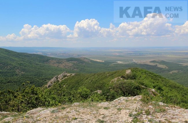 Напоследок выйдем на открытую площадку и полюбуемся видами на Карадаг, хребет Туар-алан и Старокрымский лес. Вдалеке, среди леса можно разглядеть светлые строения армянского монастыря Сурб-хач. Спуститься с Агармыша можно прекрасной лесной дорогой на западную окраину Старого Крыма в районе санатория.