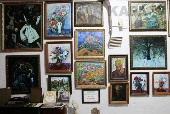 В этом году к открытию сезона активно готовились: привели в порядок, обновили и покрасили главный выставочный зал, отремонтировали помещения под мастерские. Постоянная экспозиция пополнилась новыми работами художников и мастеров декоративно-прикладного искусства. В экспозиции представлены работы совершенно разного стиля и уровня. На выставке есть как любительские работы начинающих авторов, так и произведения признанных мастеров. Например, в арт-галерее большая коллекция картин одного из лучших феодосийских художников Александра Меерсона. Также широко представлено творчество другого признанного феодосийского мастера Николая Дорофеева. В экспозиции много винтажных и старинных предметов, что придает атмосфере арт-галереи сходство с известными московскими сквотами (творческими общинами) 90-х годов.