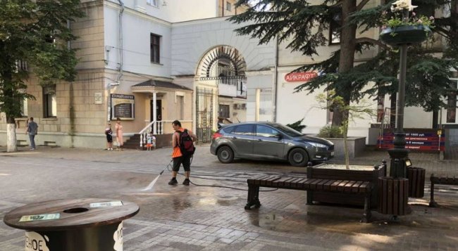 Отдельный вид еженедельной работы бригад «Города» - это мойка тротуарной плитки и уличной мебели на центральных улицах Симферополя, а также остановочных павильонов. Так, за прошедшую неделю мойка и очистка 130 столбов от рекламы была проведена на улице Киевская.