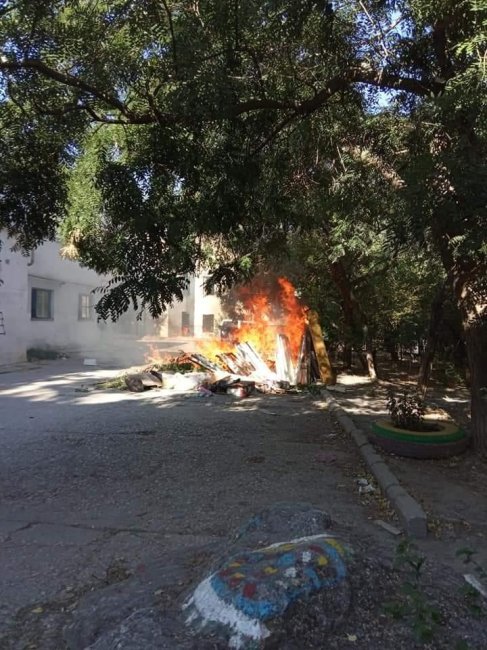 Так, феодосийка Лариса Бородич неоднократно на своей странице в социальной сети фейсбук рассказывает об этой проблеме. Накануне пожара, 3 июля она сообщила, что на площадке появились более десятка оконных рам, диван, огромные пакеты с барахлом. При этом, только первого июля с площадки убрали свалку, которая, по ее словам, до этого копилась месяц.