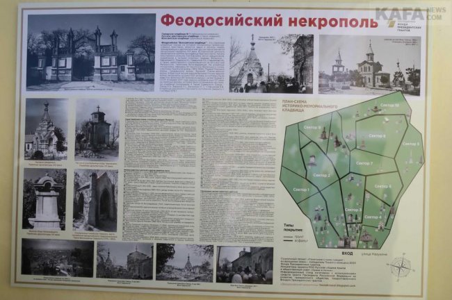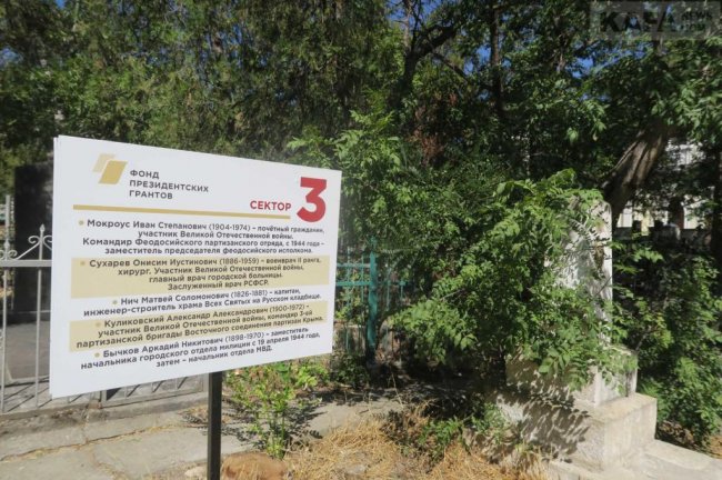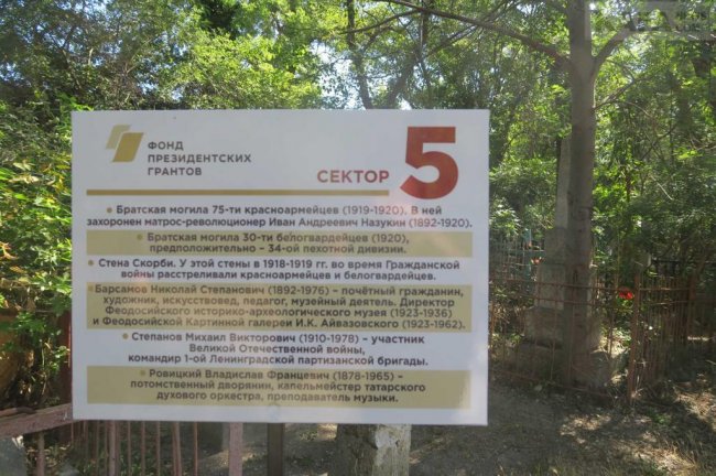 Собравшимся презентовали большой обновленный информационный стенд. Он расположился слева от главного входа на кладбище и содержит в себе план-схему некрополя и описание выявленных захоронений и памятников наиболее значимых феодосийцев. Это - представители известных феодосийских династий, военно-революционные, политические и общественные деятели, работники культуры, науки и священнослужители. Тут нашли свой покой участники Крымской, Первой мировой, гражданской и Великой Отечественной войн, в том числе четыре Героя Советского Союза. Всего здесь 18 исторических памятников и три памятника архитектуры, взятых на государственный учет.