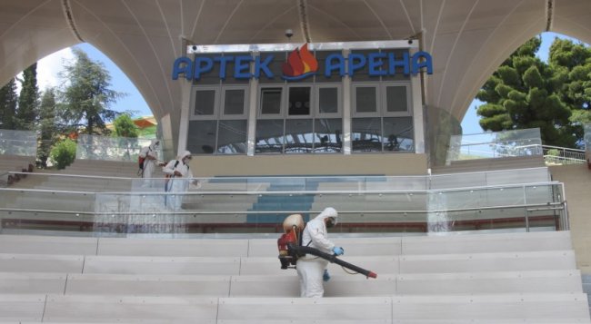 Группировка радиационной, химической и биологической защиты ведомства с помощью дезинфицирующих средств обработала 80 автобусов центра, которые будут перевозить детей, спортивные площадки, корпуса лагерей, концертный зал «Арена Артек», а также другие места общего пользования. Всего более 60 тыс. м2 территории.