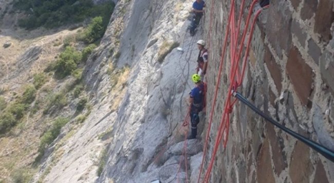 Фото пресс-службы МЧС по РК. В службу спасения поступило сообщение о том, что неизвестный мужчина поднялся без специального снаряжения на гору «Крепостная» с южной стороны крепости возле Консульской башни, самостоятельно спуститься не может, сообщили в Министерстве чрезвычайных ситуаций по Республике Крым. К месту вызова оперативно выехала дежурная смена Судакского аварийно-спасательного отряда ГКУ РК «КРЫМ-СПАС», сотрудники ГУ МЧС России по РК. Министр чрезвычайных ситуаций Республики Крым Сергей Шахов рассказал, что по прибытии, спасатели приступили к работе по эвакуации пострадавшего. Выяснилось что, мужчина, взбираясь на гору, не рассчитал свои физические возможности, добрался до скального выступа, обратно спустится не смог из-за сильного испуга. «Специалисты «КРЫМ-СПАС» совместно с сотрудниками ГУ МЧС России по РК поднялись на скальный выступ к потерпевшему, расположенному на высоте около 150 м над уровнем моря. С помощью альпинистского снаряжения эвакуировали пострадавшего, оказали психологическую помощь. От медицинской помощи мужчина отказался», - добавил министр.